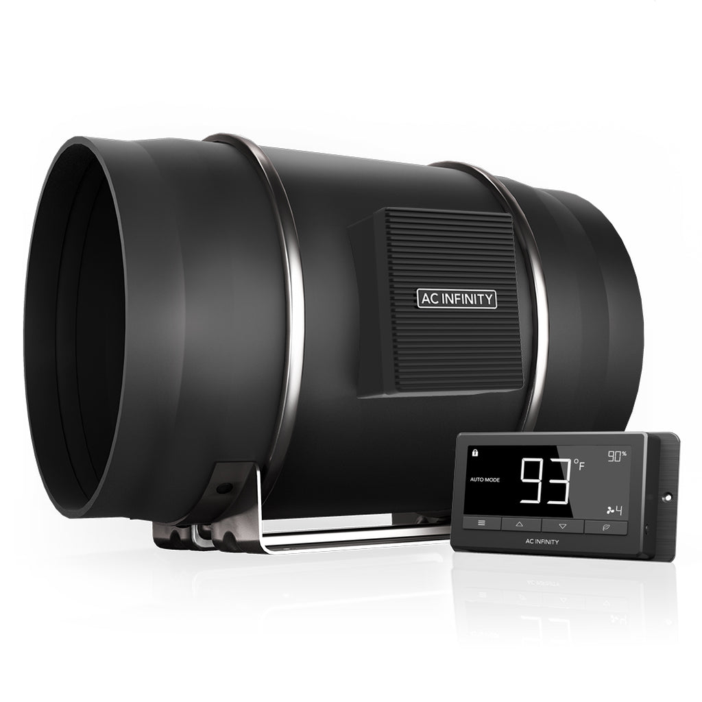A smart inline duct fan designed to quietly ventilate hydroponic grow rooms, boost heating/cooling to rooms, circulate fresh air, exhaust projects, and cool AV closets. Featuring an inline mixed-flow design, the duct fan can maintain airflow even in high static pressure applications. Contains an EC-motor with PWM-control for a quiet and energy efficient performance. The motor box containing the fan’s impeller and blades can be detached from the mounted frame for easy cleaning and maintenance. Includes an intelligent controller that features advanced programming and functions. Complete kit includes one duct fan unit, one thermal controller, one corded thermal probe, two duct clamps, installation manual, and all necessary mounting hardware.