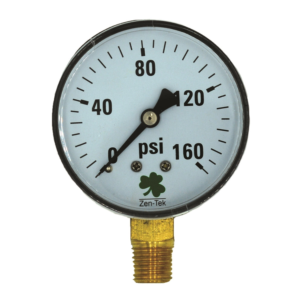 Zenport DPG160 Zen-Tek Instruments 0-160 psi dry air pressure gauge is constructed of a 2.5-inch diameter ABS case with 372 plastic window, 1/4 NPT brass bottom connection and brass internal mechanism. This quality gauge features grade A accuracy (1.6%) and features a high visibility dial and number readout.