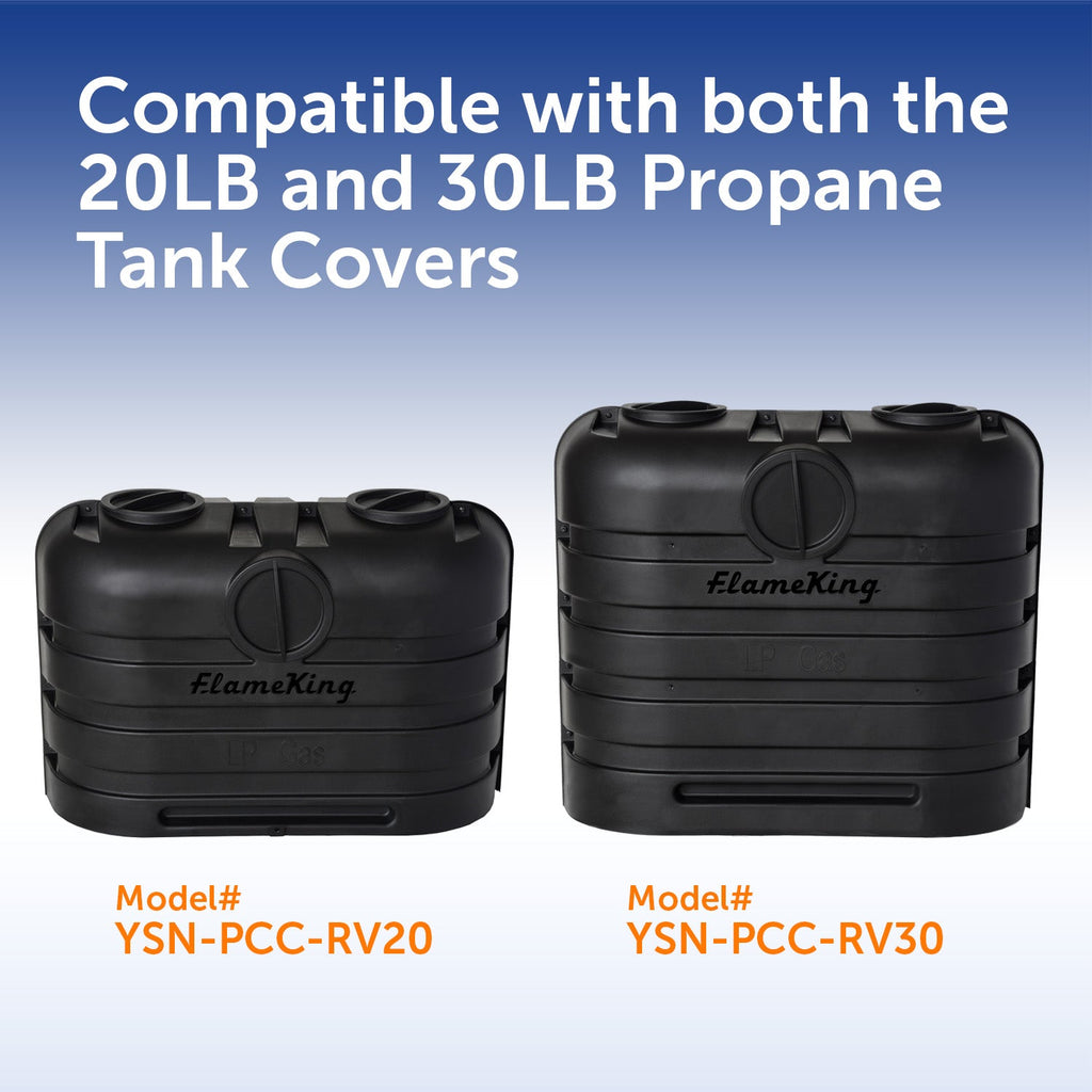 These caps allow you to easily view or adjust your 2-stage regulator and propane tank valves without removing the Flame King Heavy Duty Propane Tank Cover