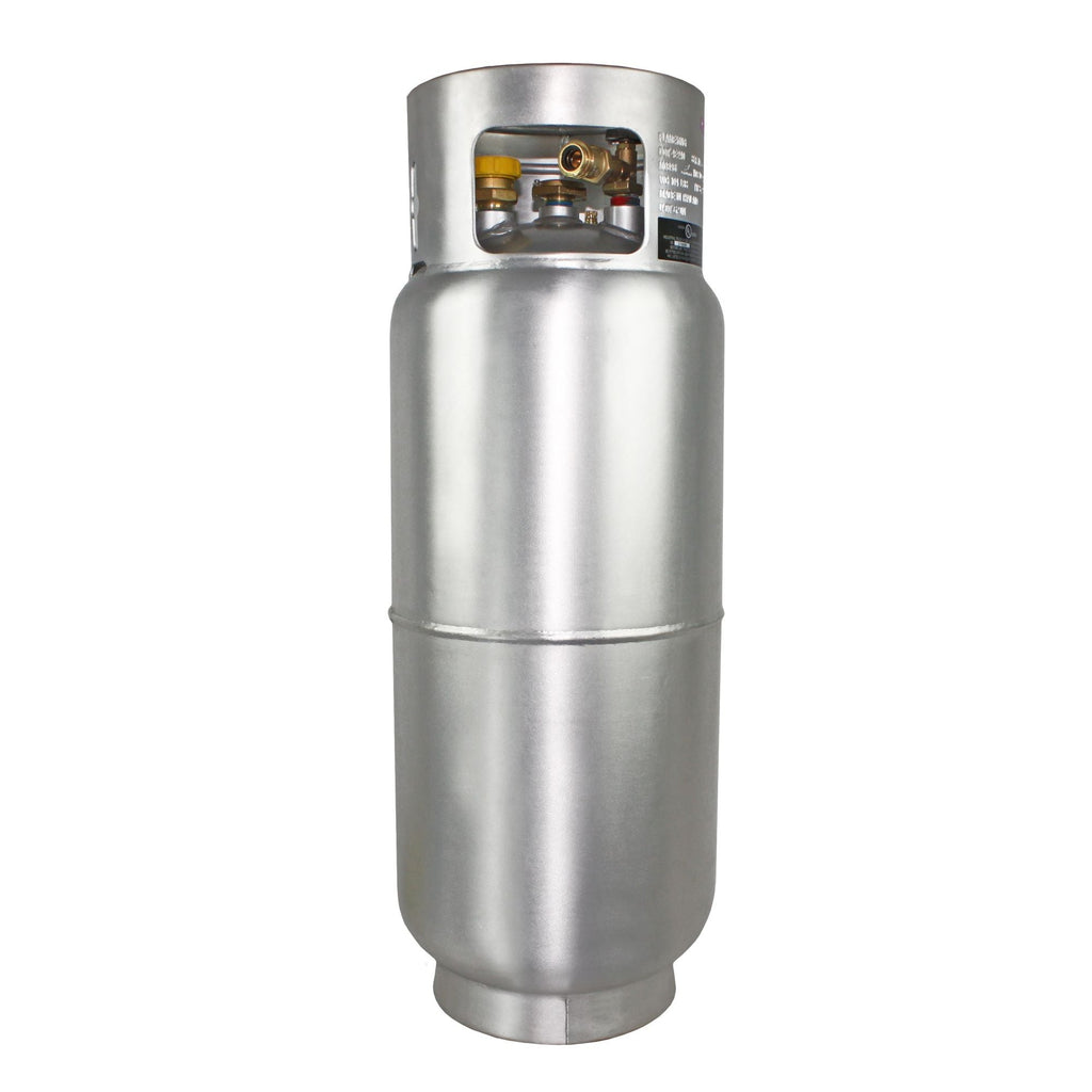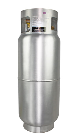 FORKLIFT READY, CORROSION-RESISTANT and RUST-FREE! This tank features a liquid draw design for use in forklift applications, can be mounted horizontally or vertically, and comes with a built-in gauge. It is rugged-designed to withstand the rigors of warehouse transportation. Constructed from high-grade Aluminum which is lighter than Steel, making it ideal for lightweight strength increasing delivery efficiency, and decreasing lifting injuries. Also comes with comfortable hand-holds in the collar for easier lifting. Arrives in a bright, shiny, and smooth finish. You can trust the high quality, durability, and safety of all the Flame King Propane Tanks. All tanks are pre-purged, vacuum-ready for filling with LP gas. They are X-Ray and Hydrostatic Tested and DOT (Department of Transportation) and TC (Transport Canada) Certified. Flame King, a leader in propane storage solutions, prides itself in making the highest quality, premium, refillable propane tanks in the market. From 1/4LB up to 420LB tanks, we've got you covered! NOT COMPATIBLE WITH BBQs or STANDARD PROPANE APPLIANCES — These require VAPOR draw, but forklift tanks are designed for LIQUID draw, making them unsafe and incompatible.