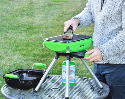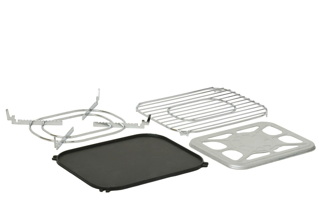 Flame King's MULTI-FUNCTIONAL Camp Stove makes outdoor cooking fun and convenient! Our lightweight grill has 4 removable legs that pack up quickly for easy storage and transport while also providing a stable cooking surface. As versatile as it is efficient, the Flame King portable propane grill includes a stovetop grate, bbq grate, double-sided griddle, heat distributor, and a pot/wok cover so whether you're grilling burgers or simmering stew for dinner or scrambling eggs and flapjacks for breakfast, you can do it all on the very same grill. With convenient auto-ignition and adjustable heat control, the 8,000 BTU burner provides ease of use and an adjustable heat source for even, efficient cooking.