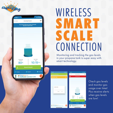 Have you ever gone to start up the grill to cook some delicious barbeque and then realized your propane tank is out of gas? Never run out of propane again! With the help of the Smart Propane Tank Scale Gauge from Flame King. Advanced smart technology works to help you track and measure the gas levels of your tank. It works with Bluetooth and our free app so you can monitor weight on your mobile device or phone. Download our free app on either iTunes or Google and easily connect your scale to your mobile phone or device. It’s super convenient and easy to use! Now you’ll always know when your tank needs to be refilled.