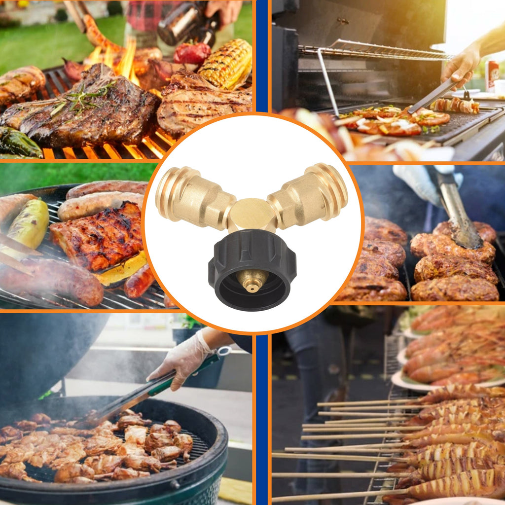 The Flame King Propane Tank Y Splitter Adapter easily allows for two different connections to one propane cylinder. Great for grills, lamps, and any other propane-fueled appliance. Multi-tasking with one propane cylinder has never been this easy!Weight: 1.2 lbDimensions: 4 x 3.5 x 2 inches