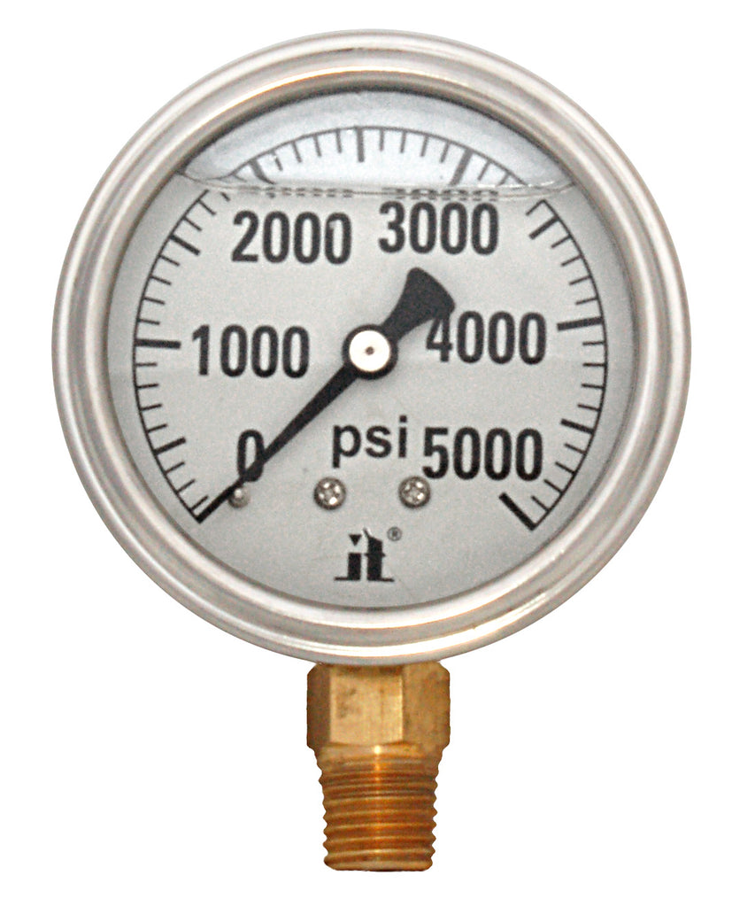 Zenport LPG5000 Zen-Tek Instruments liquid glycerin filled 0-5000 psi pressure gauge is an excellent choice for vibrating environments, such as around working machinery and is built with a 2.5-inch diameter ABS case with 372 plastic window, 1/4 NPT brass bottom connection and brass internal mechanism. Glycerin helps prevent icing and moisture penetration. This gauge is great for use with water systems, air tanks, oil systems and more. This quality gauge features grade A accuracy (1.6%) and features a high visibility dial and number readout.