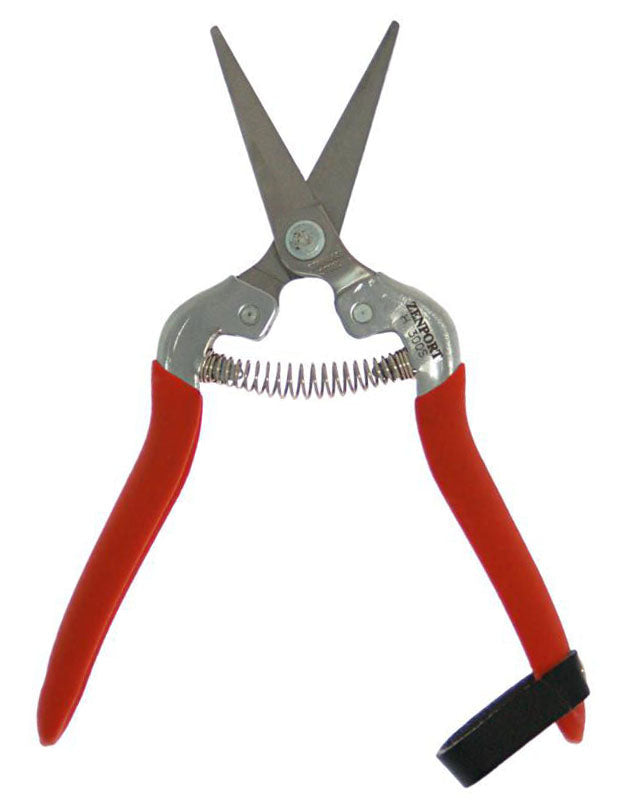 Zenport Shears H300S long, straight edge, stainless steel, blades to resist rust and corrosion, making them excellent for vineyard grape harvesting, thinning and floral applications. Long handles, with comfortable, non-slip grips, provide excellent control and leverage. Spring loaded action automatically opens blades after each cut; blades lock closed when not in use. Overall length of 7.25-inches (184mm).