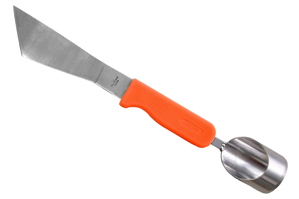 7. 25-inch Stainless Steel Blade with Corer that extends 3-inches from handle.