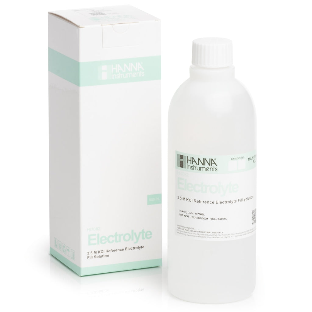 HI7082L is a pH and ORP electrode fill solution that contains 3.5M KCl, which is specifically produced for double junction electrodes. The electrolyte level in refillable electrodes should be checked before performing any measurements. If the level is low, refill with the proper electrolyte solution to ensure optimum performance. This simple maintenance helps guarantee adequate head pressure to promote the flow of reference electrolyte into the sample being measured.
