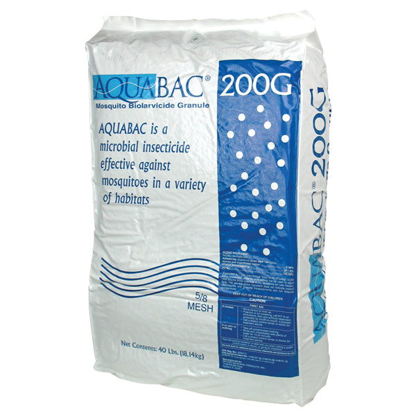 AQUABAC 200G larvicide contains Bacillus thuringiensis var. israelensis (Bti) - the best and most effective natural control for Mosquitoes, Fungus Gnats and Black Flies! Bti is a bacteria that specifically targets mosquitoes, fungus gnats and black flies in their larval stage, but is harmless to beneficial insects, wildlife, humans, pets or livestock.