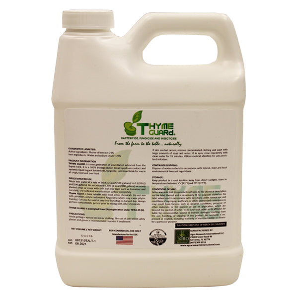 How does it work? With plant pathogens, it attacks and breaches their cellular membranes, causing their death. As an insecticide, it works as an endocrine disruptor, suffocant and repellent. None of these modes of action will cause the pest to develop resistance and Thyme Guard is 100% biodegradable, so you can use it as often as you need to without worry.