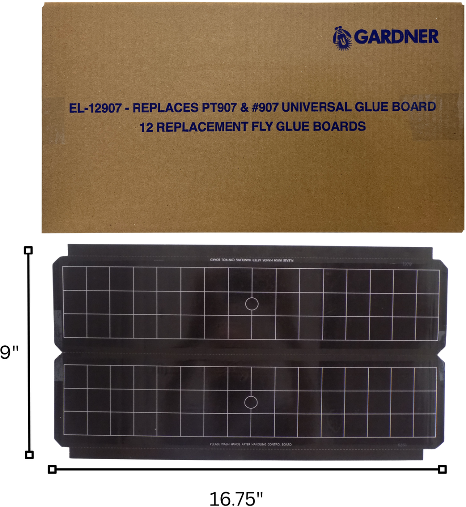 Universal 907 type glue board from Gardner Products. Perforated down the center, allowing them to be separated and make a total of 24 glue boards.