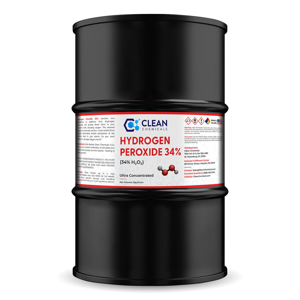 Hydrogen Peroxide 34% — Industrial Oxidizer & Agricultural Disinfectant - 55 Gallons Drum