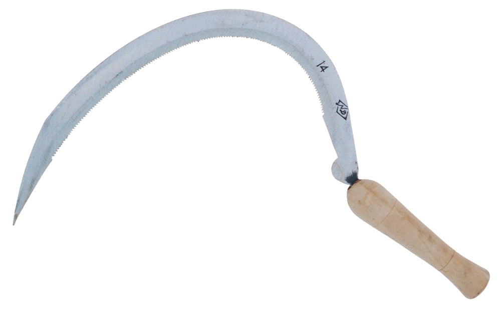 Features a light serration. Used in landscape and weeding applications. The blade is made of carbon steel and the handle of wood.