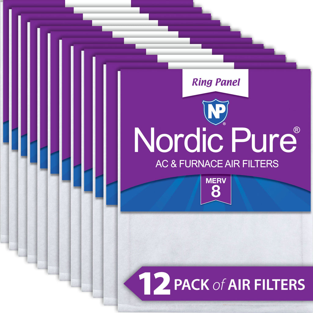 Nordic Pure Half Inch Ring Panel AC Furnace Air Filters consist of an internal frame bonded between flat layers of two different types of electrostatically charged HVAC furnace filter media. The first layer is a high-capacity, polyester filter material which acts as a pre-filter, capturing large airborne particles. The second, more efficient, layer is a MERV rated smooth poly-blend filter material. The electrostatic charge works as a magnet to draw in and trap smaller airborne particles. In combination, the half inch (1/2") double media air filters provide exceptional air filter capacity and remarkable efficiency.