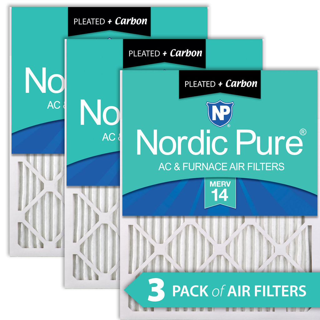 Nordic Pure 14x24x1 MERV 14 Plus Carbon air filters are made of electrostatically charged synthetic materials with an added flat panel infused with activated charcoal that attracts and capture most airborne particulates in your home. It will help eliminate unwanted odors as well as trap most airborne dust and particulate matter for fresh, clean air. Odorous gases and vapors (VOC) are attracted to and held by the activated carbon material while maintaining excellent air flow properties. With each pass through the pleated furnace air filter, the air in your living environment improves.