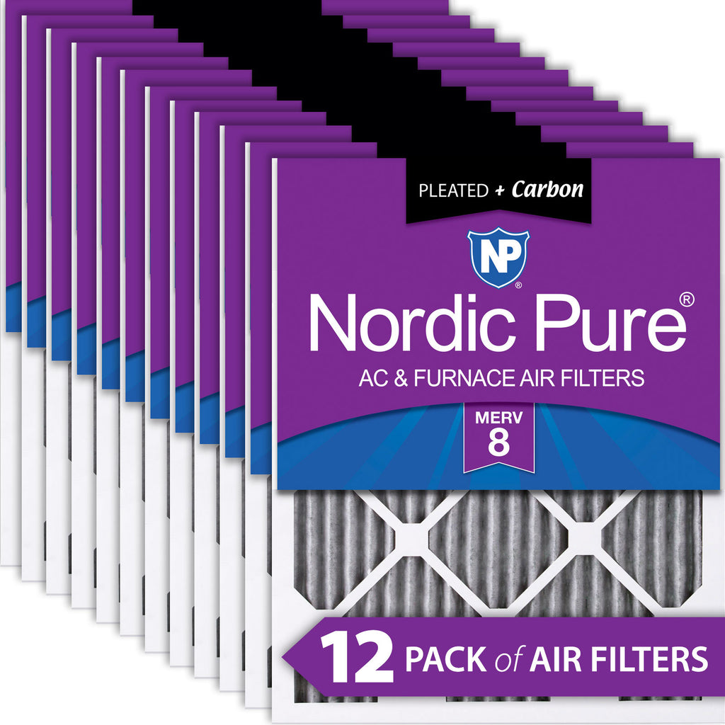 Nordic Pure pleated AC air filters are made of electrostatically charged synthetic materials that attract and capture most airborne particulates in your home or office. Each time air passes through a Nordic Pure pleated furnace filter, lint, household dust, pollen, dust mites, pet dander, baking flour, mold spores and other contaminants are removed. Our filter media prevents the growth of bacteria or mold, resulting in a much healthier living space. This high performance HVAC replacement filter will outperform non-electrostatic fiberglass filters, washable filters, poly disposable filters, and will help keep your air conditioning and heating systems running efficiently, saving you money on utilities and costly maintenance. The effective life of your air filter depends on both the inside and outside conditions of the environment in which the filter is being used. We recommend that you change your air filter every 30-90 days to maintain maximum efficiency and indoor air quality.