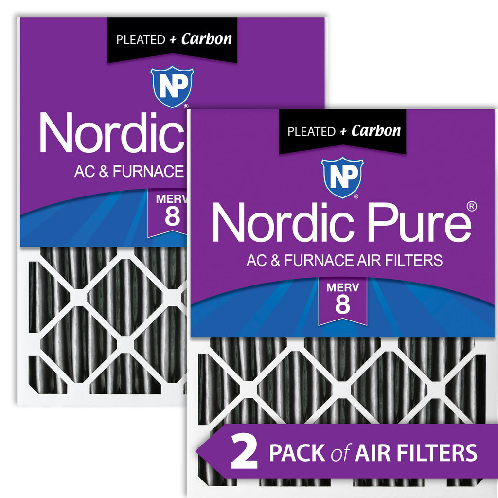 Nordic Pure 16x20x4 Plus Carbon Air Filters MERV 8 are made of a dual material where the MERV rated material has been fused together with a carbon layer. This results in less flow restriction and 33% more surface area for cleaner smelling air. It will help eliminate unwanted odors as well as trap most airborn dust and particle matter for fresh, clean air. Odorus gases and vapors (VOC) are attracted to and held by the activated carbon material while maintaining excellent air flow properties. With each pass through the carbon furnace air filter, the air in your living environment improves. Each time air passes through a Nordic Pure pleated furnace filter, lint, household dust, pollen, dust mites, pet dander, bacteria, mold spores and other contaminants are removed. All Nordic Pure pleated air filters are manufactured using a heavy duty, moisture resistant beverage board frame. There is a metal mesh support grid bonded to the pleats for extra support. Our carbon AC filter media prevents the growth of bacteria or mold, resulting in a much healthier living environment.
