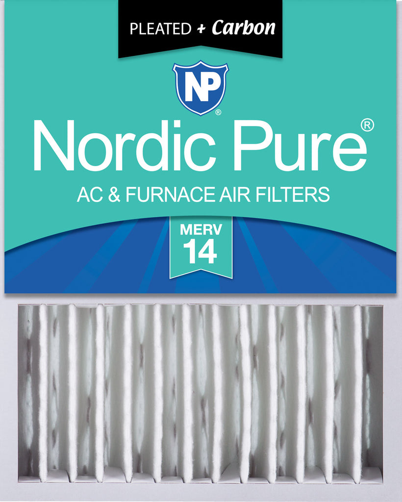 Nordic Pure 16x20x5 Honeywell Replacement MERV 14 rated air filters are what is considered the traditional 5” filter at an actual 4 3/8”. It can replace not only Honeywell but Lennox, Carrier, and Bryant air filters. Of course, this is just a list of the most well-known systems that use this size. You should always measure your current filter or the housing to make sure the actual size correlates with the filter you are ordering. The Pleated Plus Carbon air filters are made of electrostatically charged synthetic materials with an added flat panel infused with activated charcoal that will attract and capture most airborne particulates in your home. It will help eliminate unwanted odors as well as trap most airborne dust and particulate matter for fresh, clean air. Odorous gases and vapors (VOC) are attracted to and held by the activated carbon material while maintaining excellent air flow properties. Each time air passes through a Nordic Pure pleated furnace filter, lint, household dust, pollen, dust mites, pet dander, smog, bacteria, allergens, mold spores and other contaminants are removed. All Nordic Pure pleated air filters are manufactured using a heavy duty, moisture resistant beverage board frame. There is a metal mesh support grid bonded to the pleats for extra support. Our AC filter media prevents the growth of bacteria or mold, resulting in a much healthier living environment.