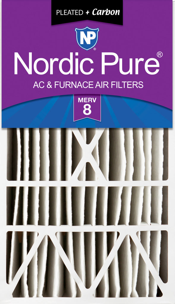 Each time air passes through a Nordic Pure Pleated ASG activated carbon replacement furnace filter, lint, household dust, pollen, dust mites, pet dander, bacteria, mold spores and other contaminants are removed. Our air filters use permanently electrostatically charged material that acts like a magnet to help dust cling to the air condition filter. All Nordic Pure pleated + carbon A/C filters are manufactured using a heavy duty, moisture resistant beverage board frame. There is a metal mesh support grid bonded to the pleats for extra support. Our AC filter media prevents the growth of bacteria or mold, resulting in a much healthier living environment.