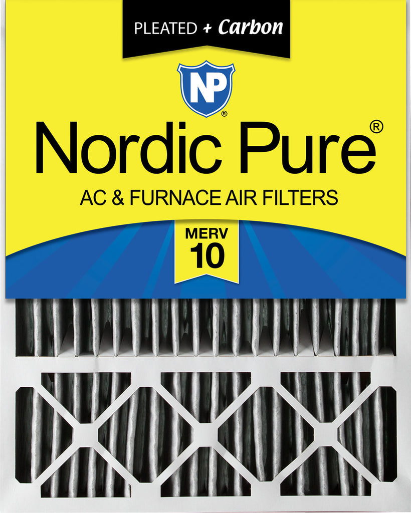 Nordic Pure 20x25x5 Honeywell Replacement MERV 10 rated air filters are what is considered the traditional 5” filter at an actual 4 3/8”. It can replace not only Honeywell but Lennox, Carrier, and Bryant air filters. Of course, this is just a list of the most well-known systems that use this size. You should always measure your current filter or the housing to make sure the actual size correlates with the filter you are ordering. The Pleated Plus Carbon air filters are made of a dual material where the MERV rated material has been fused together with a carbon layer. This results in less flow restriction and 33% more surface area for cleaner smelling air. It will help eliminate unwanted odors as well as trap most airborne dust and particulate matter for fresh, clean air. Odorous gases and vapors (VOC) are attracted to and held by the activated carbon material while maintaining excellent air flow properties. With each pass through the pleated furnace air filter, the air in your living environment improves. Each time air passes through a Nordic Pure pleated furnace filter, lint, household dust, pollen, dust mites, pet dander, bacteria, allergens, mold spores and other contaminants are removed. All Nordic Pure pleated air filters are manufactured using a heavy duty, moisture resistant beverage board frame. There is a metal mesh support grid bonded to the pleats for extra support. Our AC filter media prevents the growth of bacteria or mold, resulting in a much healthier living environment.