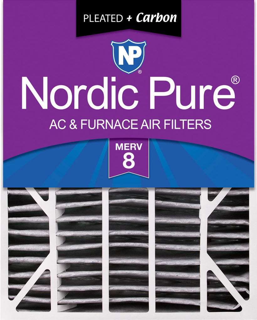 Nordic Pure 20x25x6 Aprilaire Space-Gard 2200 Replacement Air Filters Part 201 MERV 8 Plus Carbon are made of a dual material where the MERV rated material has been fused together with a carbon layer. This results in less flow restriction and 33% more surface area for cleaner smelling air. It will help eliminate unwanted odors as well as trap most airborne dust and particulate matter for fresh, clean air. Odorous gases and vapors (VOC) are attracted to and held by the activated carbon material while maintaining excellent air flow properties. With each pass through the pleated furnace air filter, the air in your living environment improves.