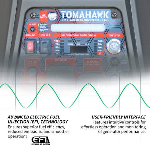 Tomahawk 4500 Watt Inverter Generators are designed for professional use. This generator provides robust, reliable power for construction sites and remote operations, with advanced inverter technology ensuring clean, stable power for sensitive electronics and heavy-duty equipment. The inclusion of EFI enhances fuel efficiency, improves start-up performance, and reduces emissions, making it ideal for OSHA working conditions. Tomahawk 4500 Watt Inverter Generators feature an electric start for effortless ignition, super quiet operation to minimize noise disruptions, and an ECO mode that maximizes fuel efficiency by adjusting the engine speed to match the load. Backed by a 2-year warranty, the TG4500iEFI guarantees durability and top-notch performance, supported by Tomahawk’s nationwide service centers and readily available spare parts