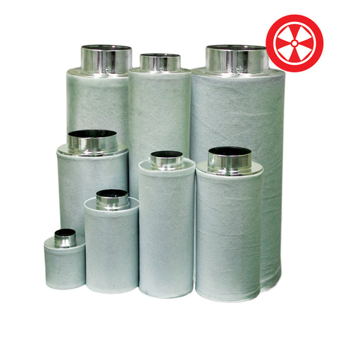6''x16", Funk Filter Carbon Air Filter. 200 CFM Funk Filters consist of an aluminum housing packed with a high performance virgin activated carbon. These are available in a wide range of sizes making them ideal for smaller tents and large commercial greenhouse applications. They remove 99.5% of all odors and most other airborne particles to keep your plants safe. The granular carbon has a 1050 mg/g iodine number providing more surface area and thus a longer filter life. The extra efficient 2 inch carbon base and aluminum housing provide an ultra-light filter that is easier to handle, yet out performs many heavier filters.