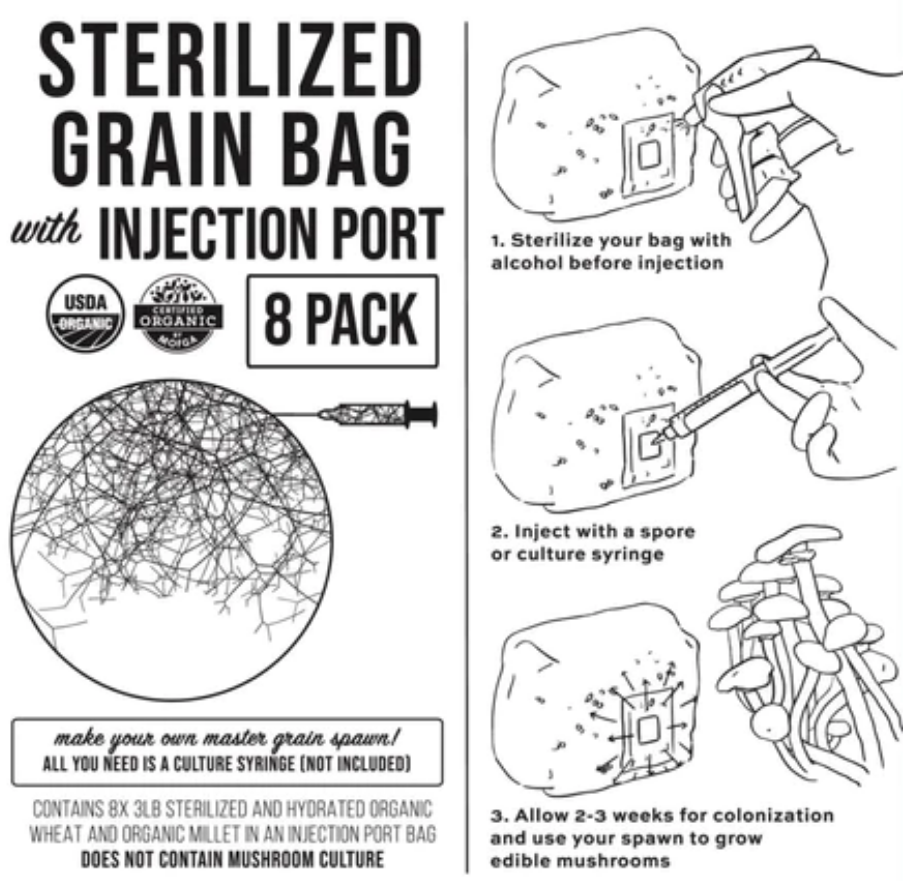 It is best practice to wait a minimum of 1 week after arrival before injecting grain bags to ensure they were not compromised during transit. Rest assured that your purchase is 100% guaranteed. If your bag was compromised, we will replace it.