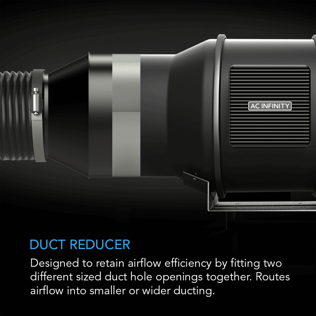 • Applications: Versatile and adaptable, this duct connector can be used with various sizes of ducting and fans. It can be paired with bathroom exhaust fans and dust collection units to adapt to smaller ductwork as a reducer. Some of the projects it can be used for include range hoods, tumble dryers and tent ventilation systems. It's also great for connecting smaller ducts to larger ones.