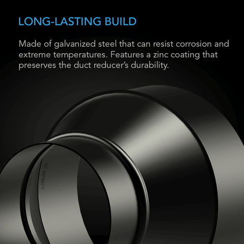 • Product Description: This is an ideal ventilation ducting tool designed to fit different-sized duct hole openings, connecting smaller ducting to larger fans and vice versa. It ensures retention of your system’s CFM efficiency when connected to your ventilation fans and your ducting. The reducer end has a raised lip for providing extra grip to ducting or duct openings, while a flat brim on the increaser end ensures a flush fit. The body is built from galvanized steel and finished with a zinc coating to enhance corrosion resistance and high-temperature tolerance.