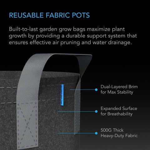 • Reusable Fabric Pots: Included in the kit are two 5-gallon fabric pots designed to improve plant growth. These pots help drain excess water and prune the roots with air, promoting a robust root network while preventing root rot.