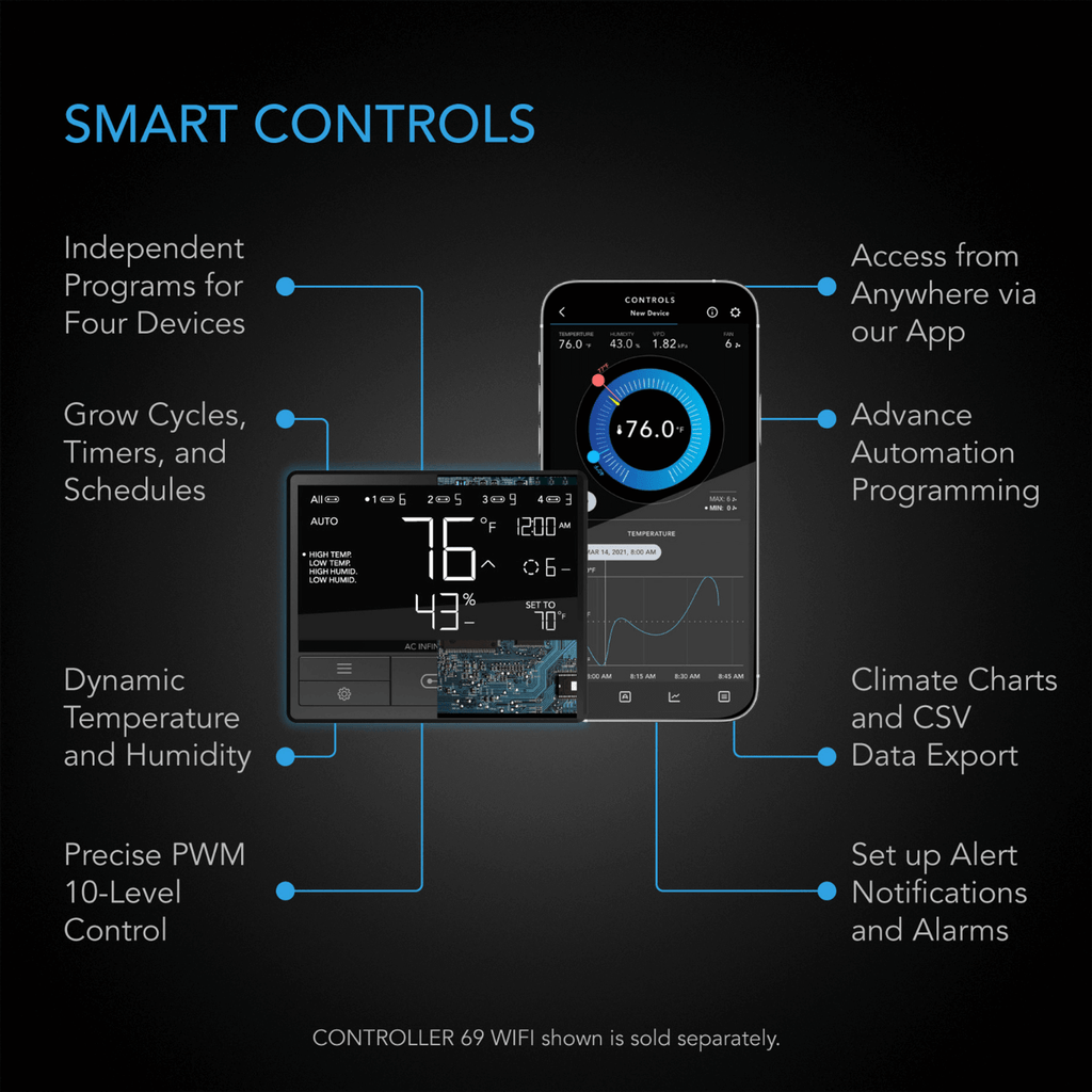 Remote Control: Whether you're on a vacation or just away from home, the WiFi-enabled CONTROLLER 69 PRO ensures that you're always in touch with your garden. Monitor and adjust settings through the AC Infinity app, giving you total control over your plant's environment.