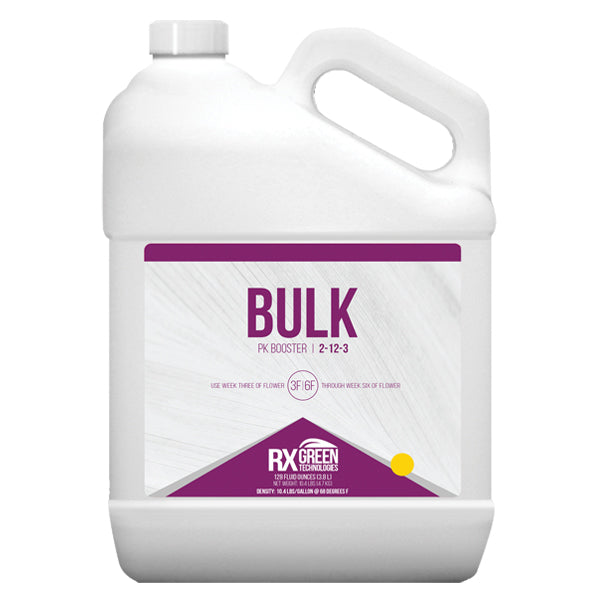 BULK (2-12-3) is a PK booster that contains high-quality phosphorus, potassium and calcium to boost flower production. While these minerals are essential to healthy growth at any stage, Rx Green Technologies has specially developed BULK for use in the flowering stage of cannabis production. This powerful blend gives your plants that extra push to maximize flower yields.