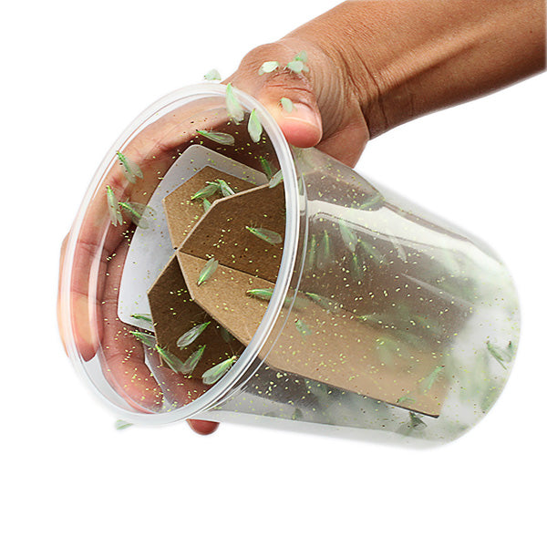 Method of Shipment, Biology and Release Rates: The adults are sold in containers (buckets) of 100 or 500 and should be released the day of receipt. Adult Green Lacewings are minor pollinators and do not provide active pest control themselves.