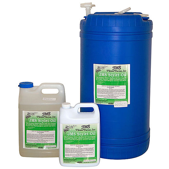 It will kill powdery mildew on contact as well as prevent development of mildew for 10 to 14 days, depending on the usage rate. JMS Stylet Oil acts as a smotherant and prevents insect respiration and spore germination. Use JMS Stylet Oil to kill mites, scale, whiteflies, psyllids and leafhoppers. Refer to the product label for a full list of pests treatable with JMS Stylet Oil. This year-round spray oil is OMRI listed; it can be used in greenhouses, on field crops, or on fruit trees.