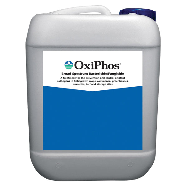 This Product Controls These Pests or Diseases: OxiPhos is effective against Pythium, Phytophthora, Bacterial Blight, Downy Mildew, Bacterial Wilt, Crown Rot, Canker, Bacterial Fruit Spot, Angular Leaf Rot, Bacterial Soft Rot, Bacterial Stem, Fruit Rot, Gummy Stem, Bacterial Blotch, Soft Rot, Scab, Late Blight, Pink Rot, Early Blight, Fusarium and Silver Scurf.