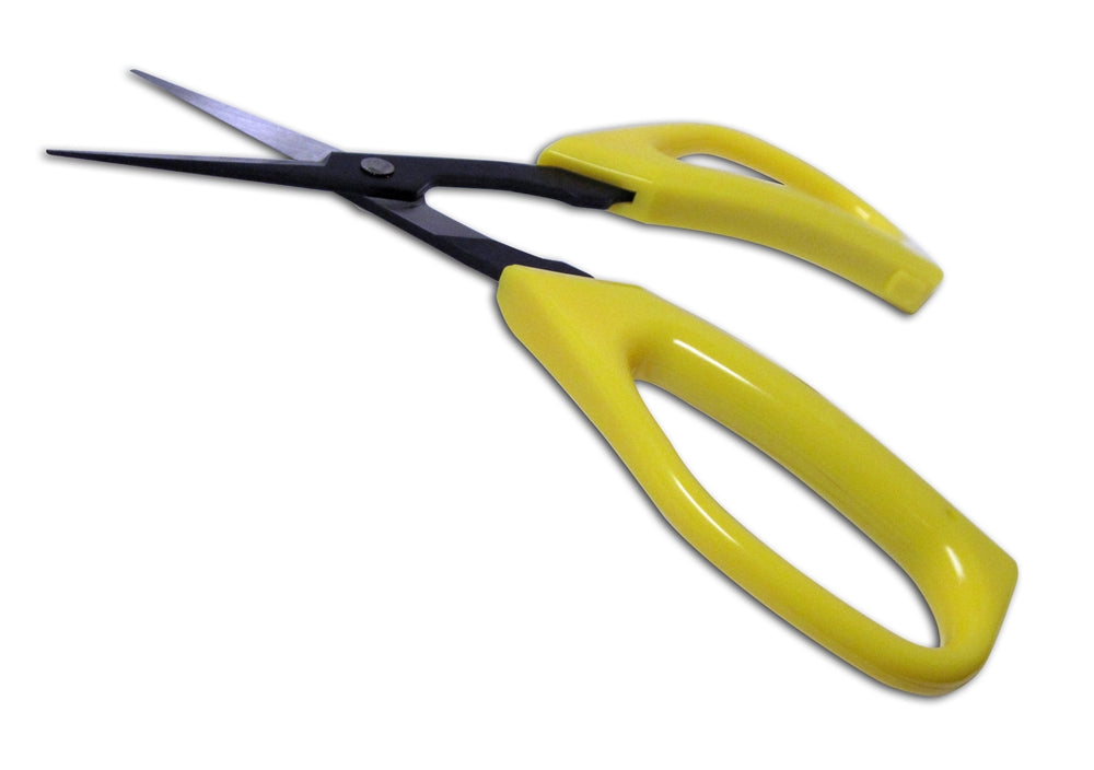 The Zenport ZS109B Ergonomic Bent Handle Deluxe Trimming Scissors, Garden, Fruit, Grape, 6.5-Inch Long, slim blades are razor sharp and make it possible to pick fruit and remove culls in even the most crowded situations. Very popular for harvest trimming and propagation. Soft bow grips fit any hand, reduce fatigue, and can be used by lefties. Blades made of carbon steel. Length: 6.5".