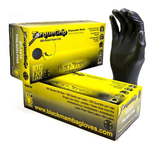 8 Mil Black Mamba Torque Grip Nitrile Gloves Large (10 Boxes Of 100).