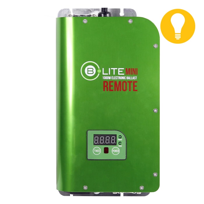 DL Wholesale introduces the BLite Mini w/Remote Capability to our powerhouse line of lighting equipment! This ballast has capabilities of running both double ended or single ended lamps and operates using either 120 or 240v power. Its user friendly interface allows you to adjust the power setting as well as lighting schedule to within 1 hour intervals. The Blite Minis bright LED screen clearly displays your ballasts current wattage setting as well as the timer. Great for ceiling mounted applications and hard to reach corners of the grow room. This bulb can fire any mogul base or double ended 400/600/1000W bulb and has features such as soft start, smart ignition, and resin injected housing limiting RF interference. Make a bright decision, get Blite MINI w/Remote today! REMOTE NOT INCLUDED.