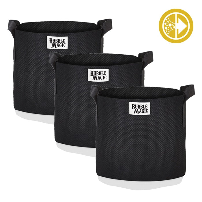 Bubble Magic Extraction Bags are made of extremely durable and distinct-looking waterproof black vinyl. Unlike other canvas bags, there is no addition water proof material to wear off after time. Each seam is double stitched with extra strong nylon thread. These bags have a unique mesh screen sidewall which provides more screen surface area and allows for faster draining. They have attached handles for easy transport and each set comes with its own personal black carrying bag.