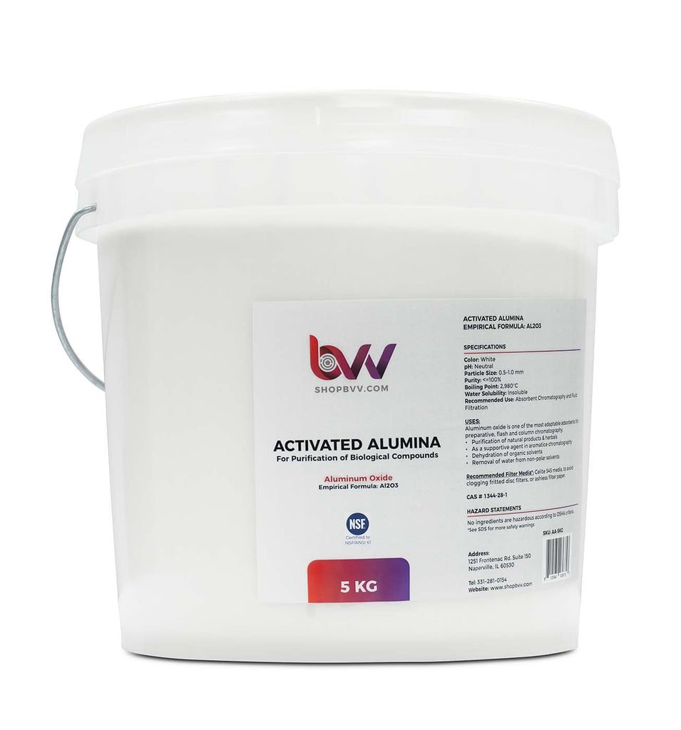 Activated Alumina also known as aluminum oxide is one of the most adaptable sorbents for preparative flash and column chromatography. NSF 61 certified & Made in USA, Purity: <=100%. Based on 8% loss on Ignition.