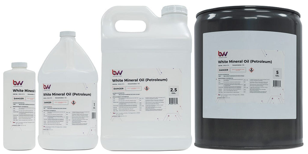 White mineral oil can be used for many applications. Industrial, cosmetics, and food processing. Our Mineral Oil can be used in direct skin and food contact. Our oil is colorless, odorless and tasteless . This mineral oil can act as a non-conductive coolant, thermal fluid, lubricant, release agent, binder, defoamer, protective coating or float, sealing and polishing agent, dust control agent, and more. It has applications in three main areas: