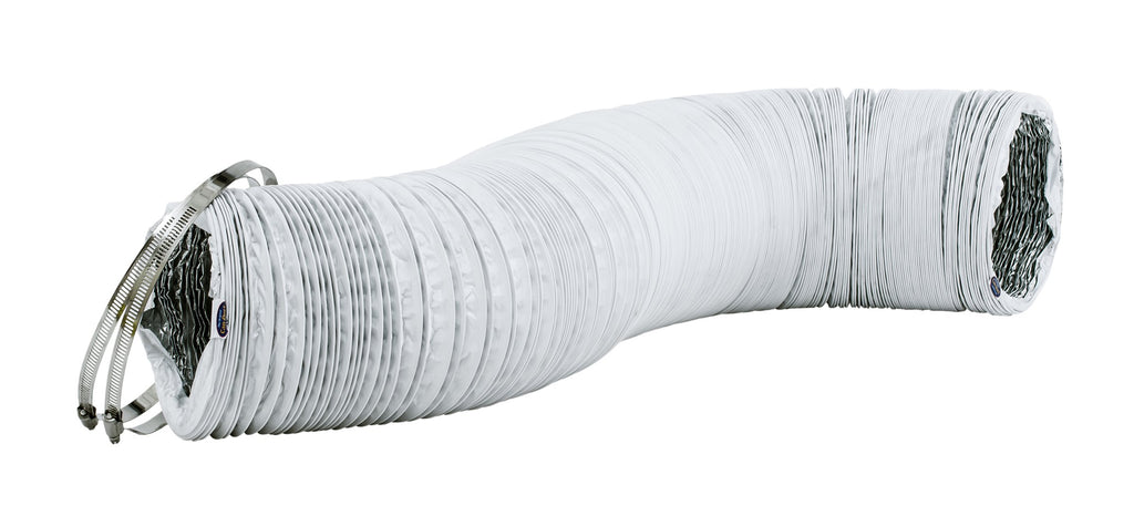 MAX-DUCT PVC is simply the best! Possibly the strongest REUSEABLE duct on the market with a cost similar to the leading competitor's regular 3-ply duct. MAX-DUCT is manufactured with triple foil laminate with very durable black PVC with UV inhibitors coating in 25' lengths and complete with 2 clamps for ease of installation.