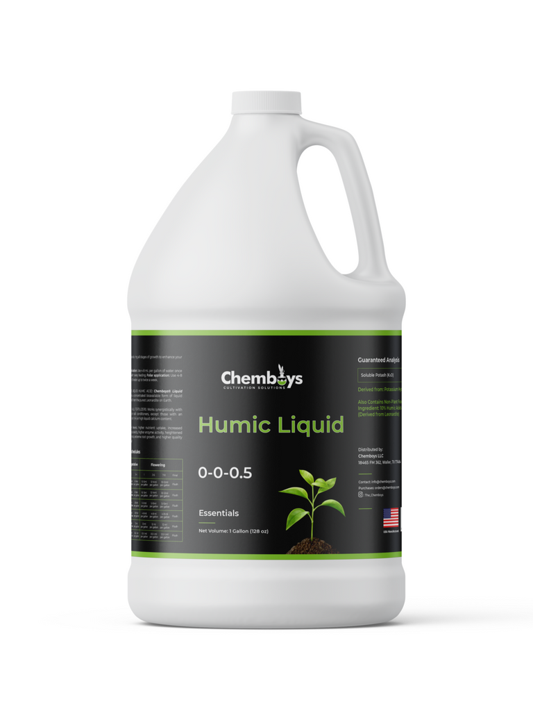 Chemboys Humic Liquid is a concentrated form of organic liquid carbon derived from the purest Leonardite. The fulvic and humic acid combination allows for the greatest nutrient uptake, and allows for rapid absorption of nutrients, while also helping to stabilize soil pH and increase water retention, leading to a stronger root system and improved plant immune system.