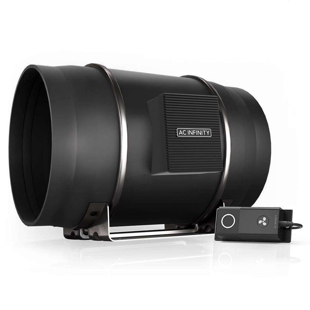 The inline speed controller enables you to set the duct fan’s speed to optimal noise and airflow levels for various environments. Unlike common AC-powered duct fans that suppresses voltage to control fan speeds, this duct fan features an EC-motor that is precisely controlled using PWM (Pulse Width Modulation). This technology enables the fan's motor to be able to run smoothly at extremely low RPM speeds without generating motor noises and heat as seen on variable voltage controllers. Eight speed options are available with power on/off switch. Due to its backup memory capability, the fan can be triggered to run at customizable speeds when given power. This S10 model can be connected to the smart controller of the CLOUDLINE T10 to share the same programming.