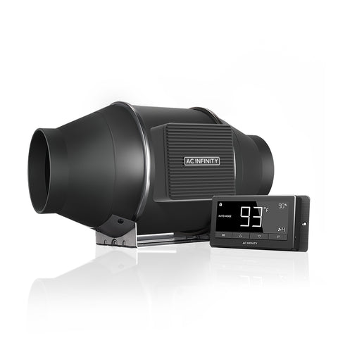 A smart inline duct fan designed to quietly ventilate hydroponic grow rooms, boost heating/cooling to rooms, circulate fresh air, exhaust projects, and cool AV closets. Featuring an inline mixed-flow design, the duct fan can maintain airflow even in high static pressure applications. Contains an EC-motor with PWM-control for a quiet and energy efficient performance. The motor box containing the fan’s impeller and blades can be detached from the mounted frame for easy cleaning and maintenance. Includes an intelligent controller that features advanced programming and functions. Complete kit includes one duct fan unit, one thermal controller, one corded thermal probe, two duct clamps, installation manual, and all necessary mounting hardware.