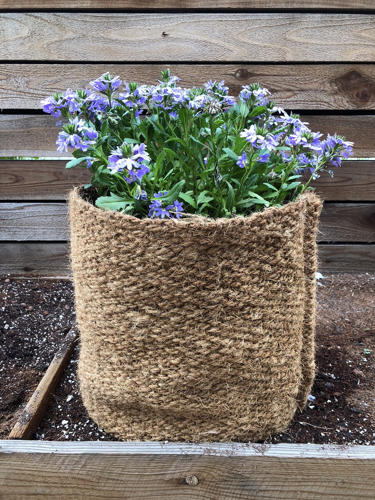 CoirNet Pot liners are made of woven natural coconut fibers. The liners are hand-woven and made of coir netting fabric. The liners are strong enough to be used directly as pots, and are designed to hold all types of grow media like potting soil, coco mix, etc.