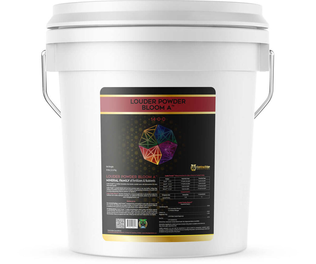 Bloom A: The Louder Powder Bloom A is slightly adjusted from the Grow A formula to offer lower concentrations of Nitrogen and higher concentrations of Calcium and Magnesium. These adjusted concentrations allow for a more controlled flowering feed that promotes more vigorous plants and higher yields. Bloom A is compatible with all irrigation platforms.