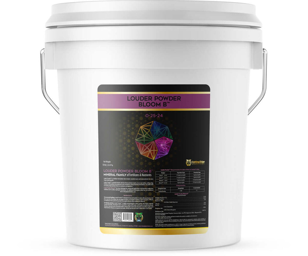 Bloom B: The Louder Powder Bloom B is a granular nutrient blend formulated with a wide variety of micro and macro nutrients. This arrangement of minerals is designed to enhance growth and vigorous blooming while elevating terpene profiles to their full potential. The high-quality chelates, and precision blending of these nutrients make them readily available to the plant, and easily soluble in water. Bloom B is compatible with all irrigation platforms including: