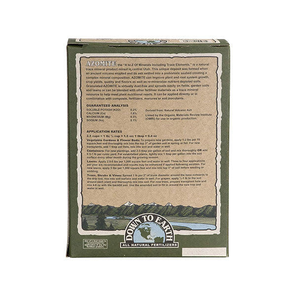 - Down To Earth’s AZOMITE, the “A to Z Of Minerals Including Trace Elements,”