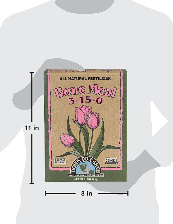 - Down to Earth Bone Meal is a five pound box of all natural fertilizer with 3-15-0 formula and is listed by the Organic Materials Review Institute (OMRI) for use in organic production